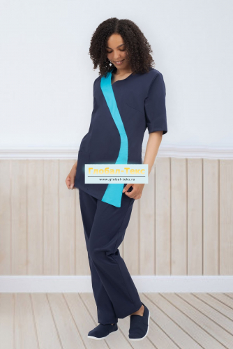 Костюм медицинский женский "Лара" для мед. работников (темно-синий/голубой) №УФР-МЕД-366