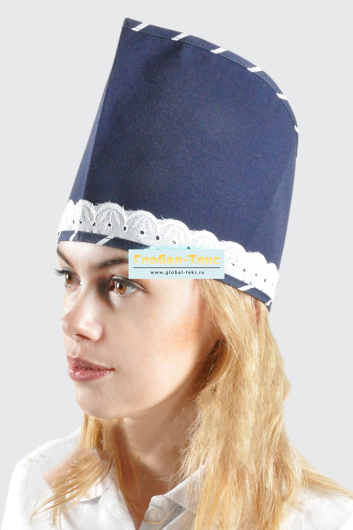 Кокошник цветной габардин (синий/белый) №УФР-ТР-76-2