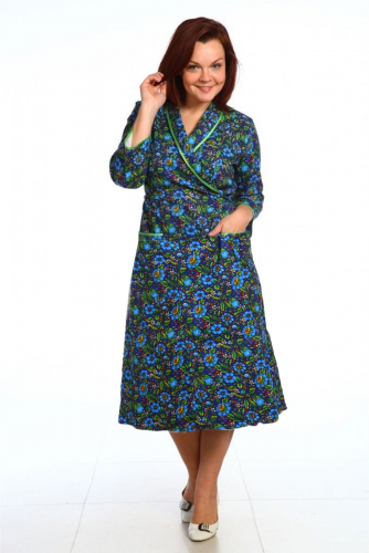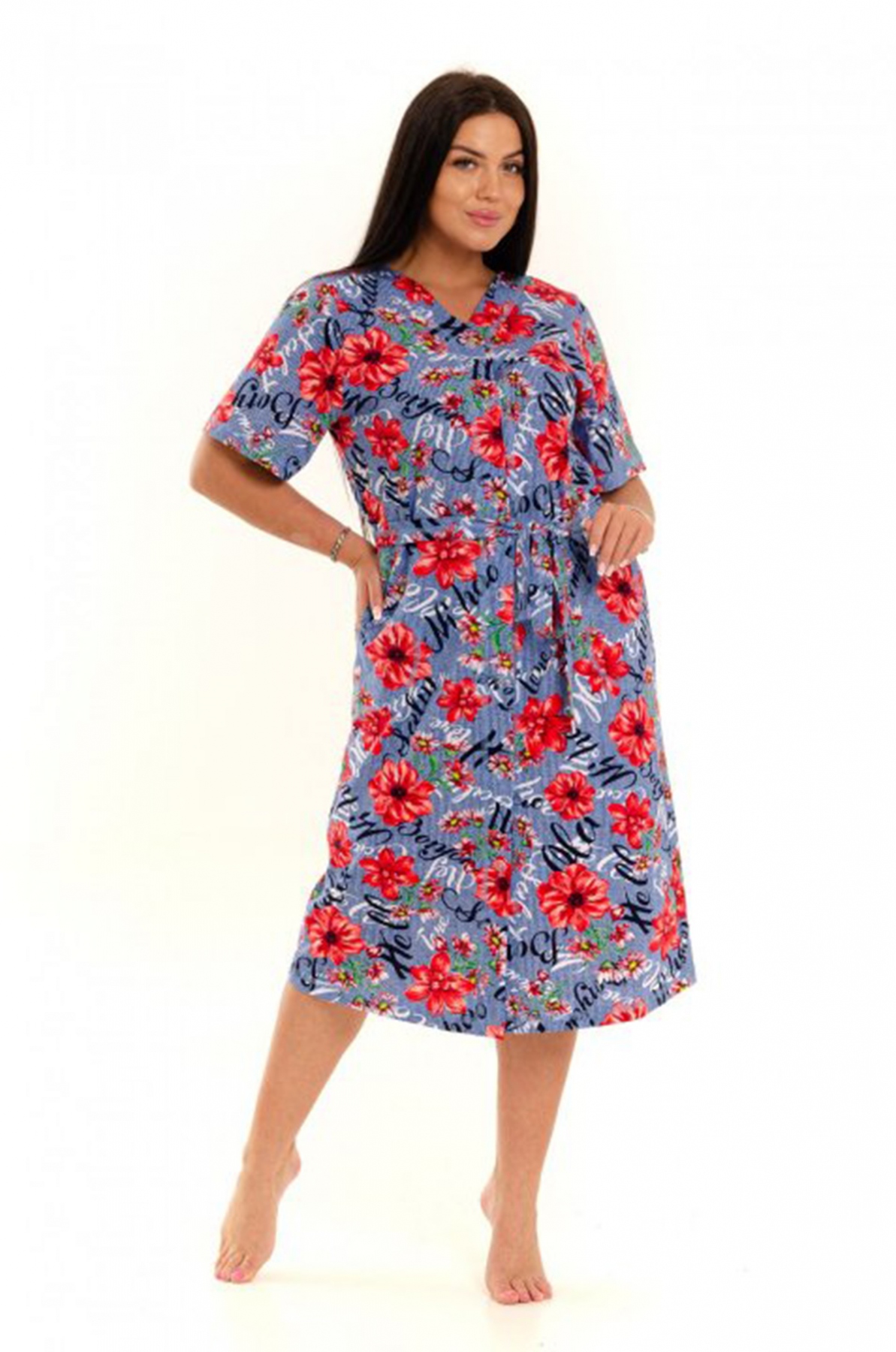 Халат женский "Валентина" (синий, цветы) №УФР-Х-1014-1