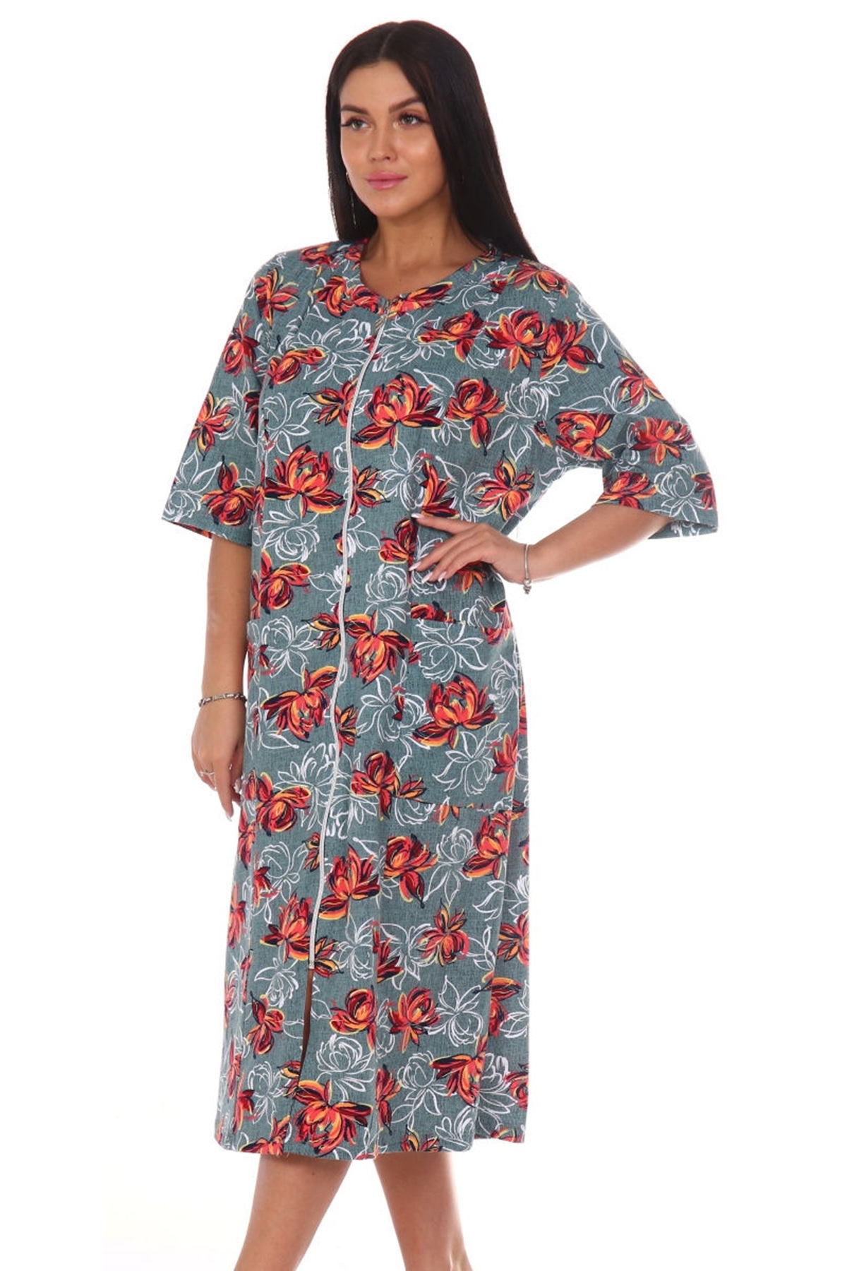 Халат женский "Валентина" (хаки, цветы) №УФР-Х-1014