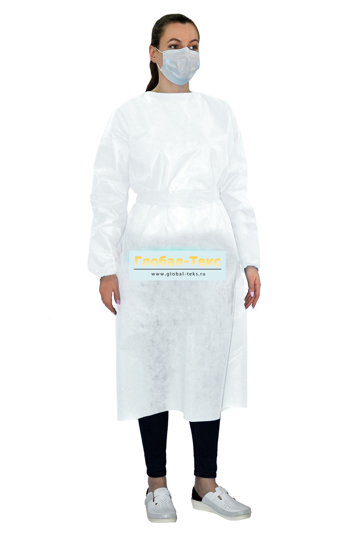 Халат одноразовый с поясом (40 гр/кв.м) спанбонд №УФР-МЕД-119