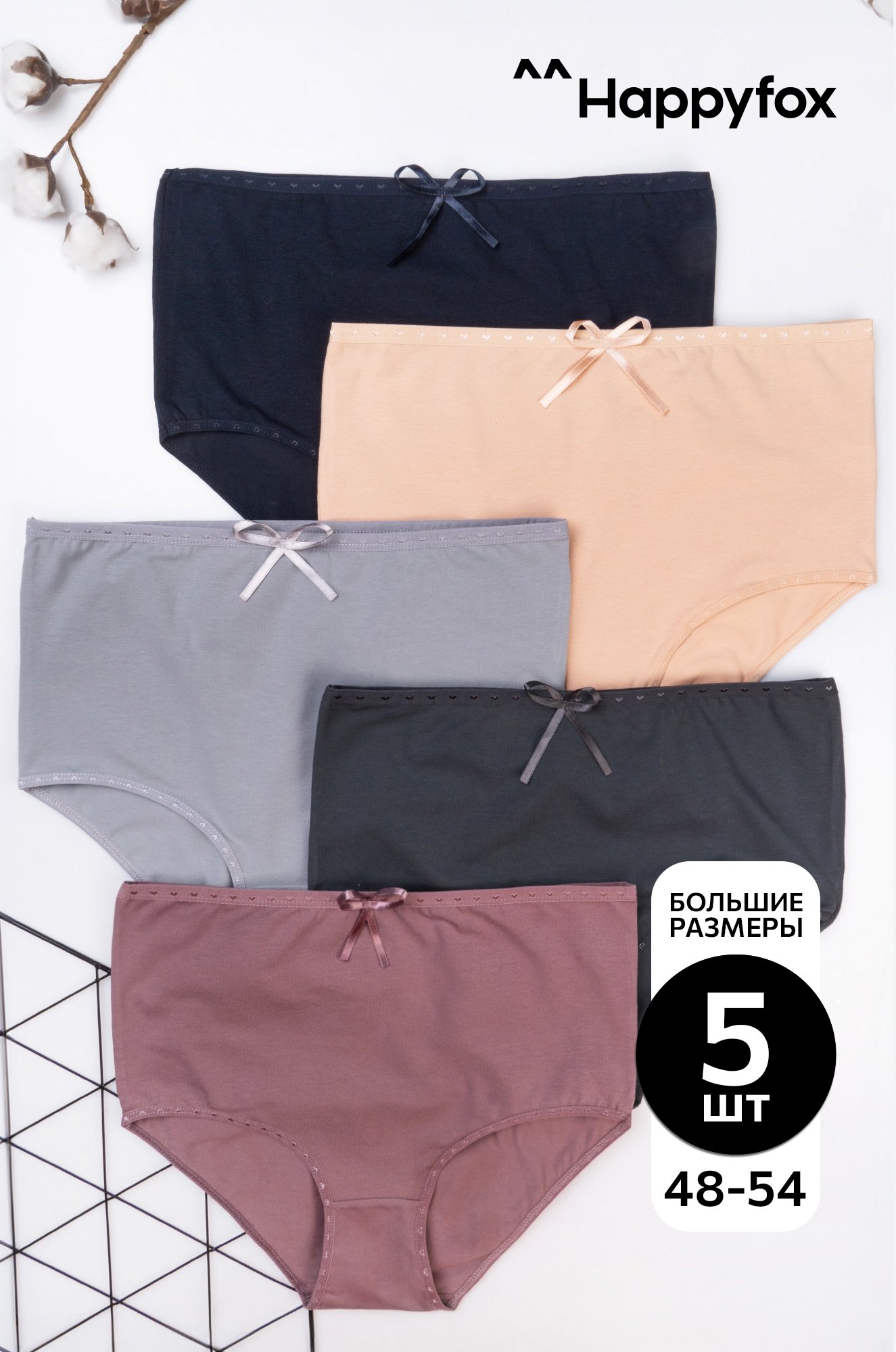 Женские трусы-макси с высокой посадкой 5 шт. Happyfox