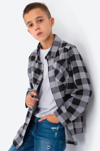 Рубашка в клетку для мальчика из футера двухнитки Happyfox
