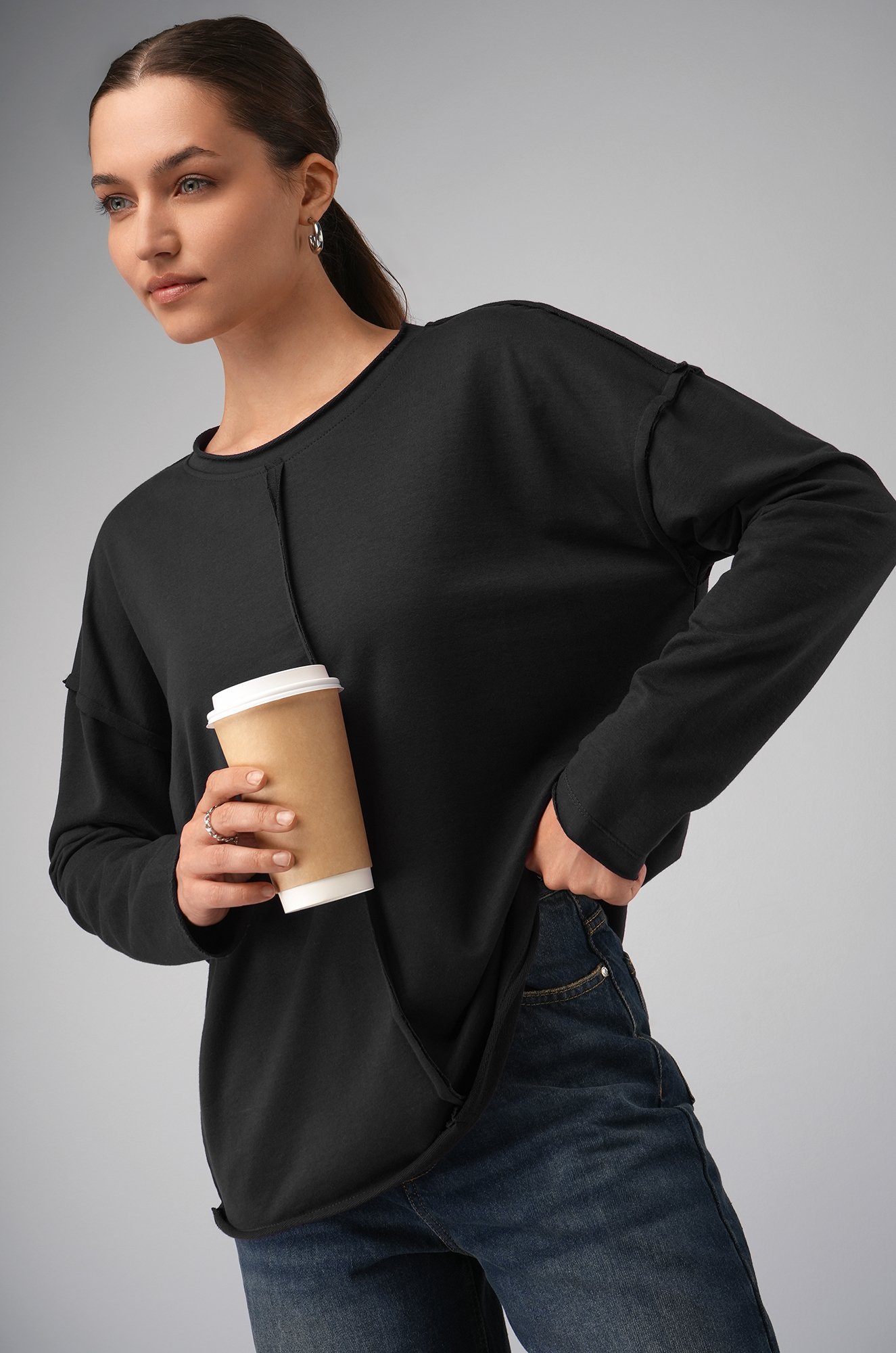 Женский лонгслив оверсайз из футера двухнитки Happyfox