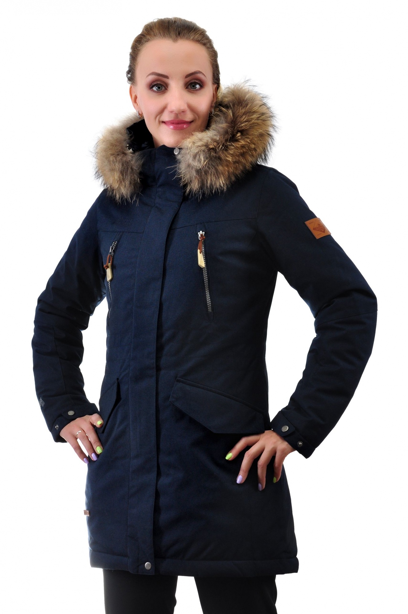 Парка (взросл.) жен. (мех енот) HIGH EXPERIENCE 8479 т.синий