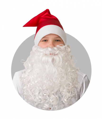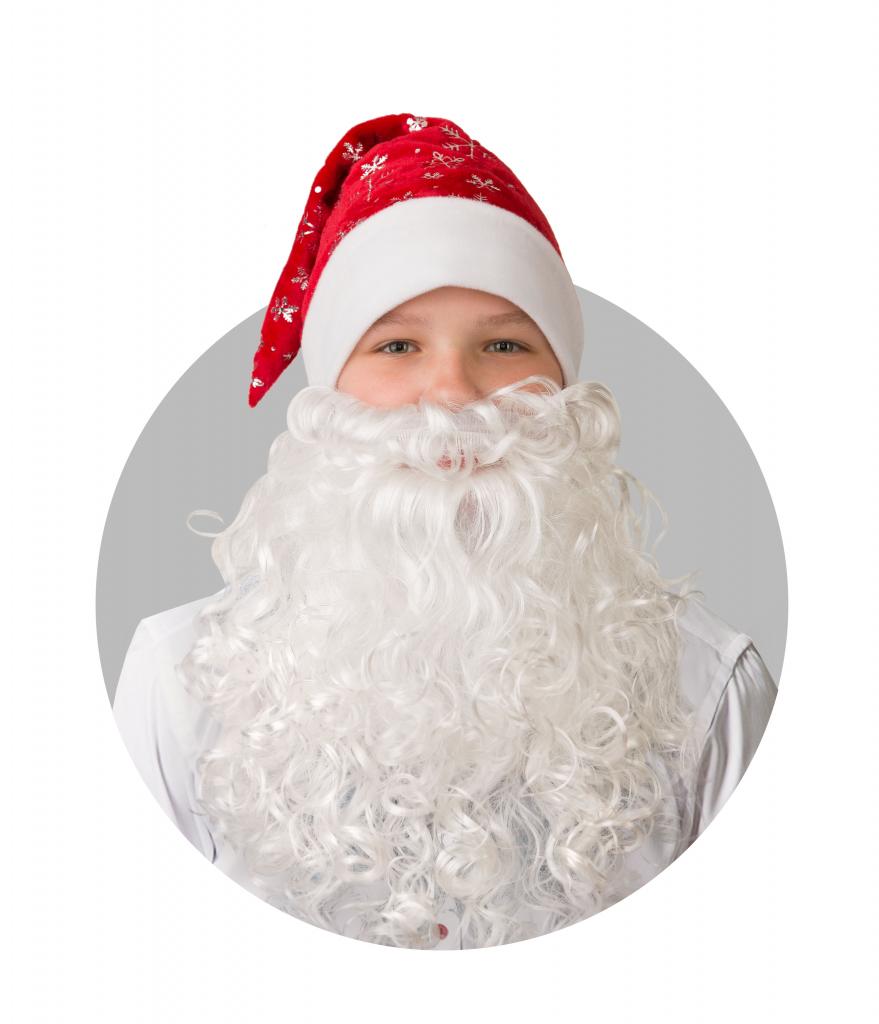 Колпак Новогодний красный с бородой, сатин 103-1