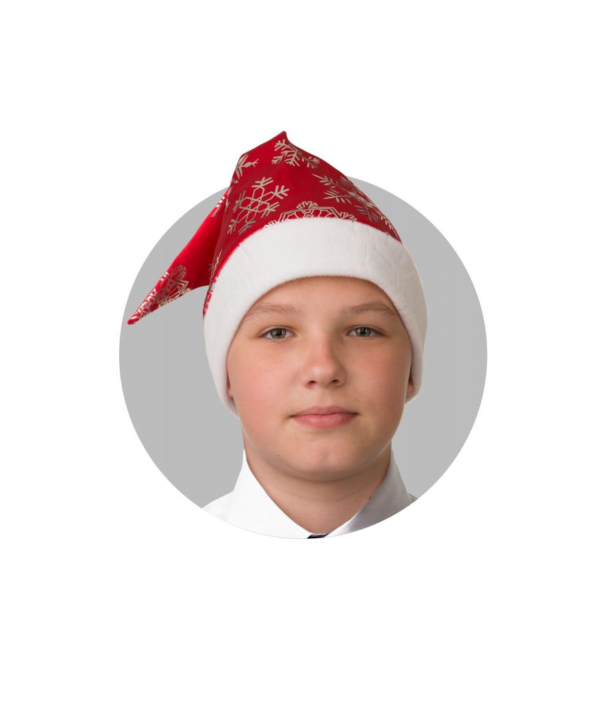 Колпак Красный со снежинками, сатин 100-3