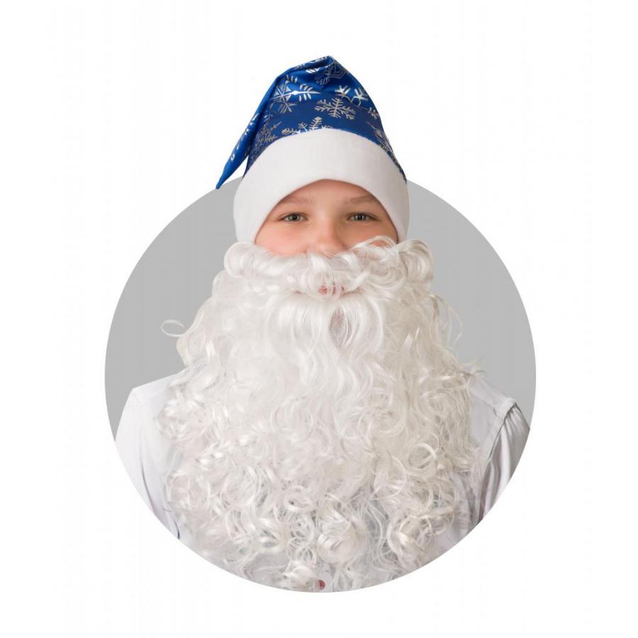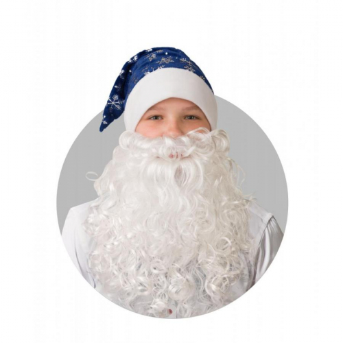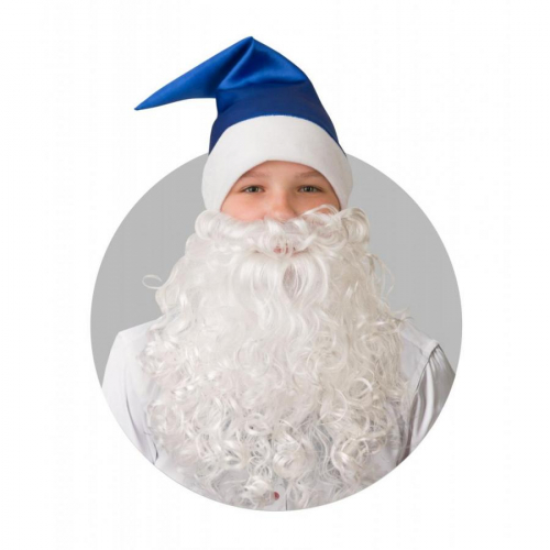 Колпак Новогодний синий с бородой, сатин 103-2