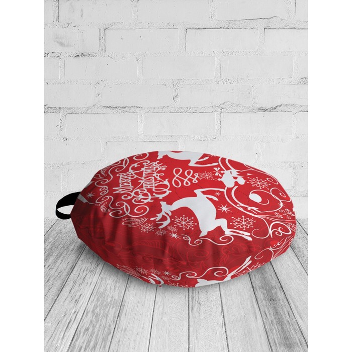 Подушка - сидушка декоративная на пол JoyArty, 52×52 см, круглая, новогодняя, красная