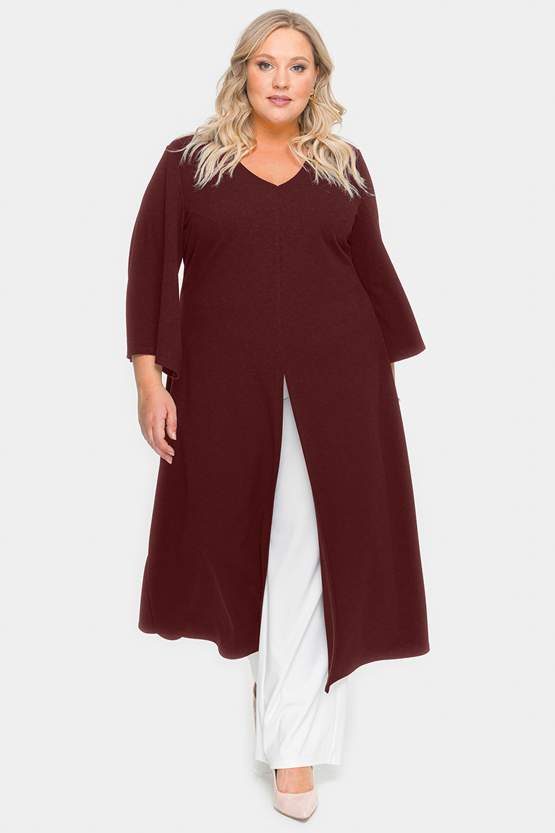 Кардиган А-силуэта, рукав расклешенный, бургунди