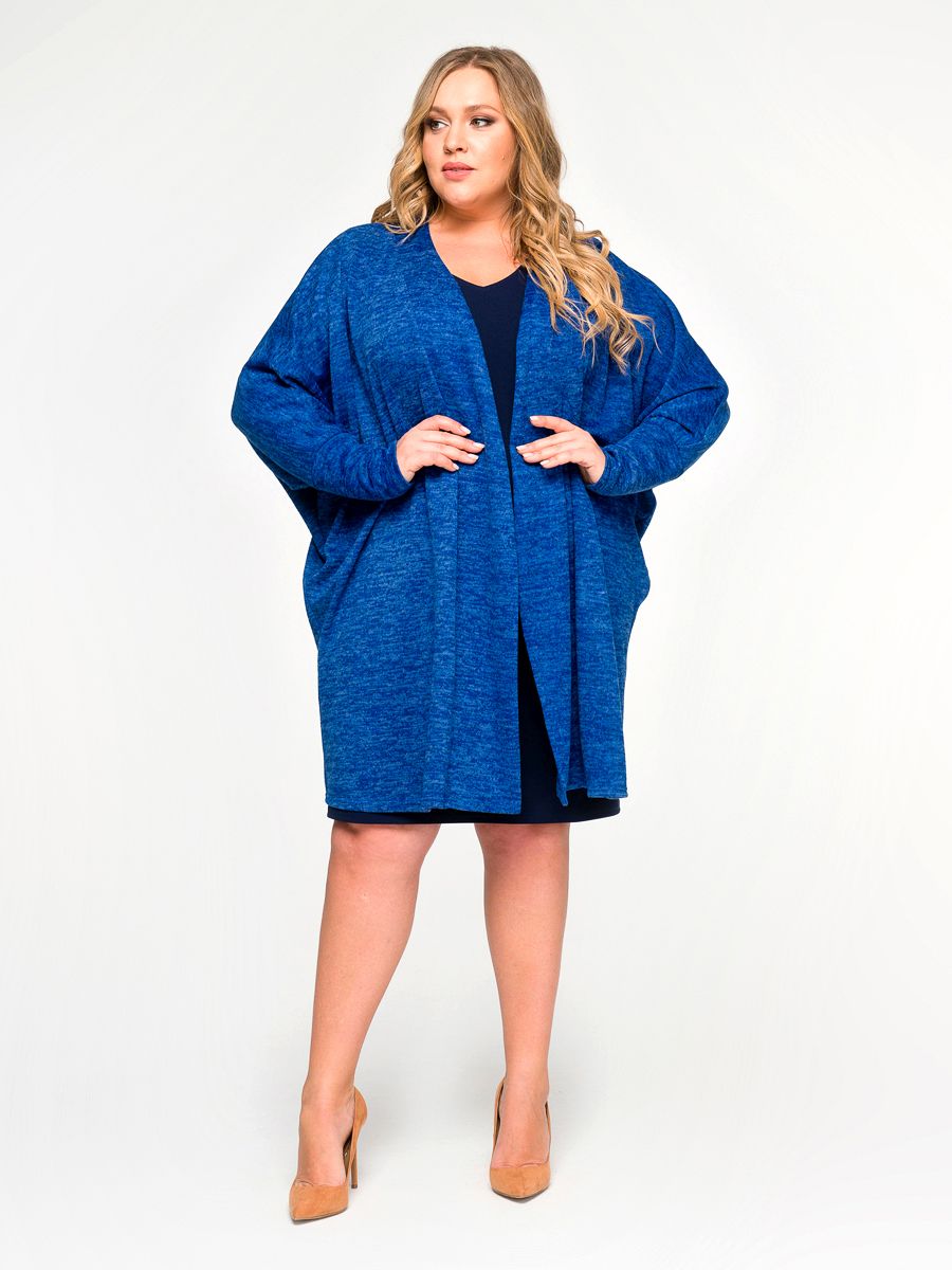 Кардиган "летучая мышь", джерси меланж темно-синий