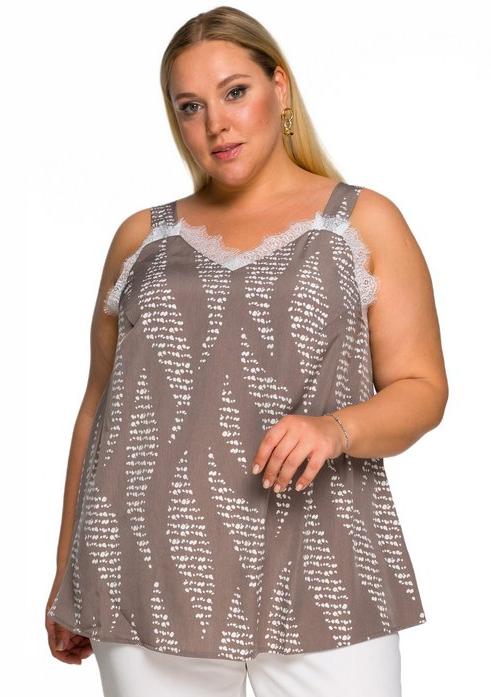 Топ с кружевом, кофейный с белой абстракцией