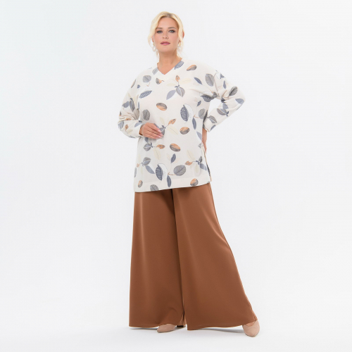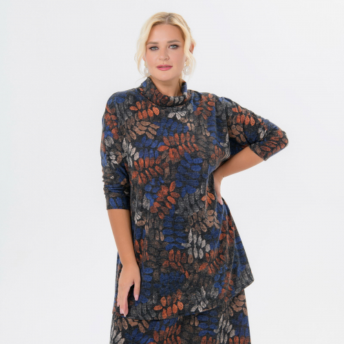 Туника с планками по горловине, ангора принт "осенний"