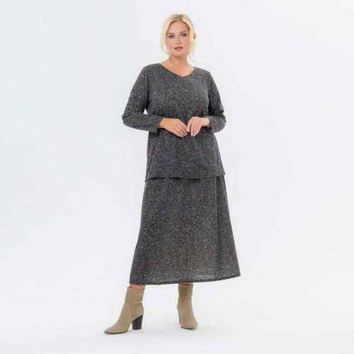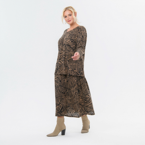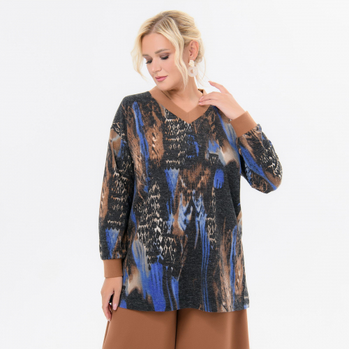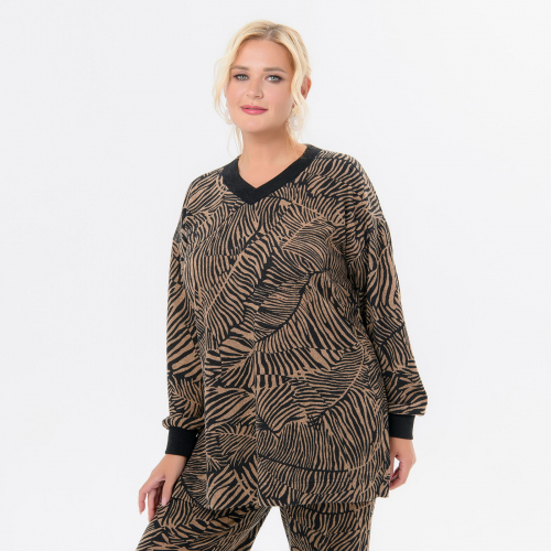 Блуза, джерси - ангора, принт каштаново-черный