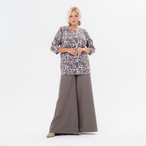 Блуза базовая, принт цветочный, цвет ореховый