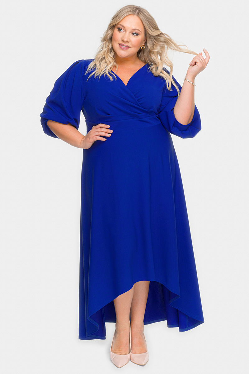 Платье вечернее с драпировкой и асимметричным низом, васильковое