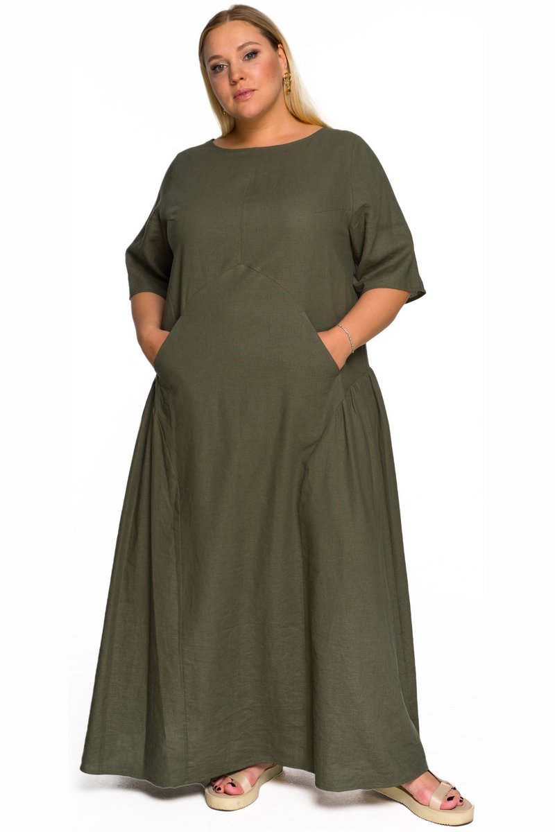 Платье длинное из льна, цвет хаки