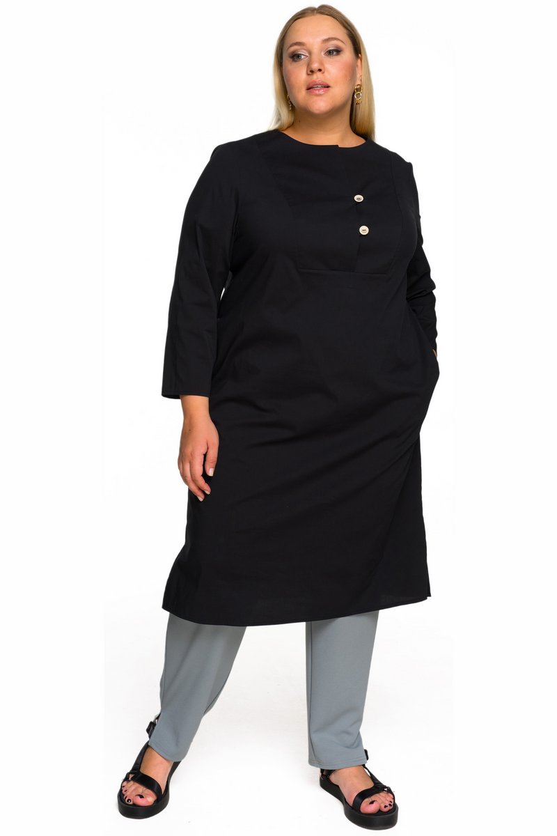 Платье - туника из хлопка, цвет черный