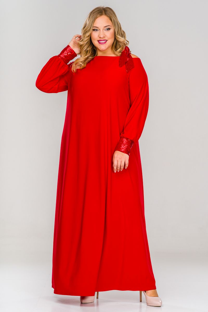 Платье вечернее свободное с манжетами из пайеток, красное