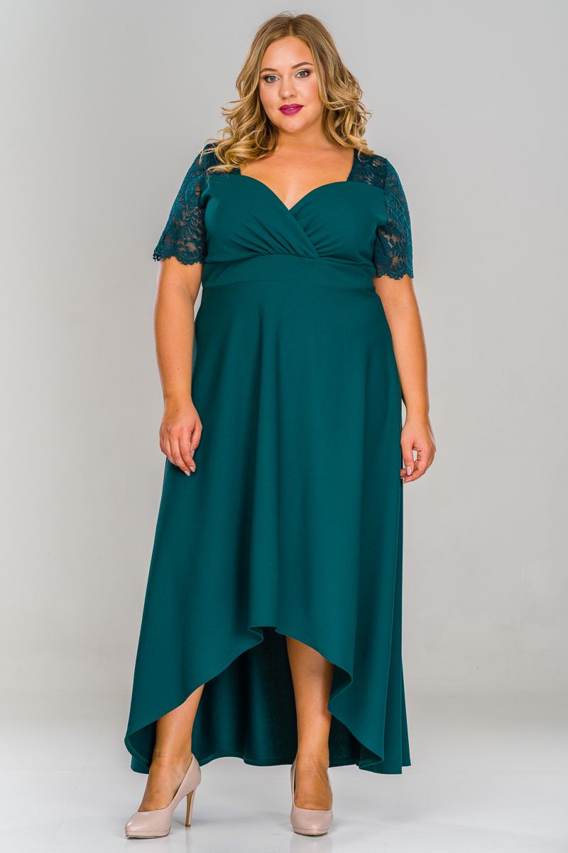 Платье вечернее с кружевной кокеткой зеленого цвета