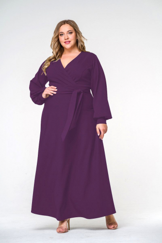 Платье длинное однотонное с манжетами бургунди