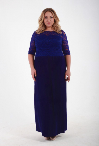 Платье длинное вечернее с кружевным верхом василькового цвета