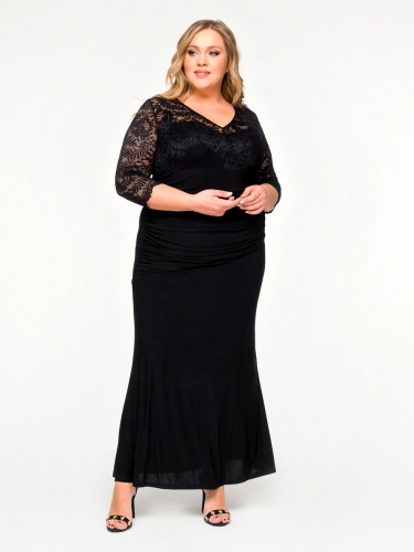 Платье длинное с драпировкой, черное