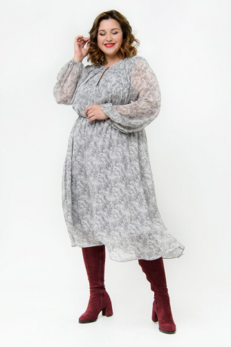 Платье с мягкими защипами по горловине, шифон, принт нежный