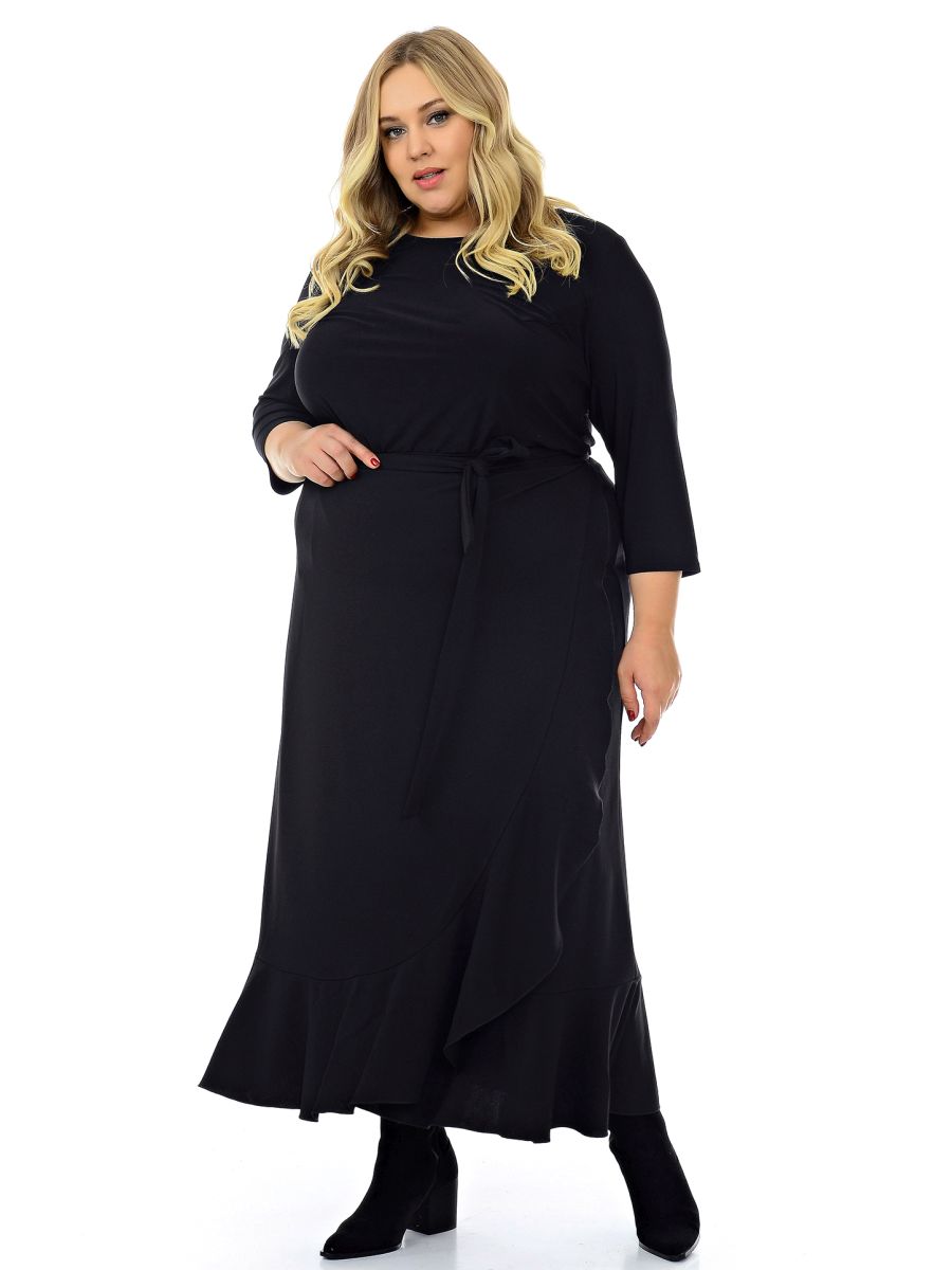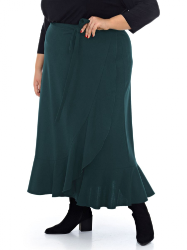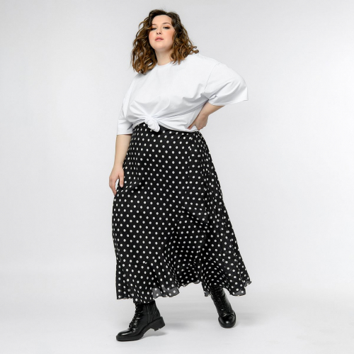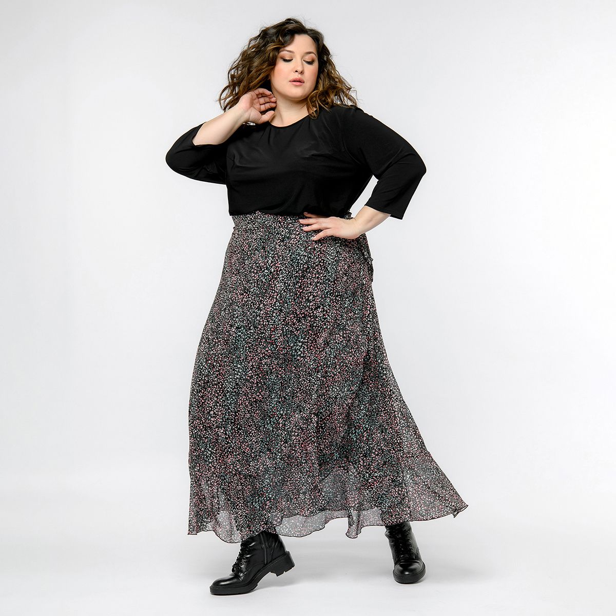 Юбка с воланом на подкладке, шифон черный с мелким принтом
