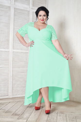 Платье вечернее с кружевной кокеткой ментолового цвета