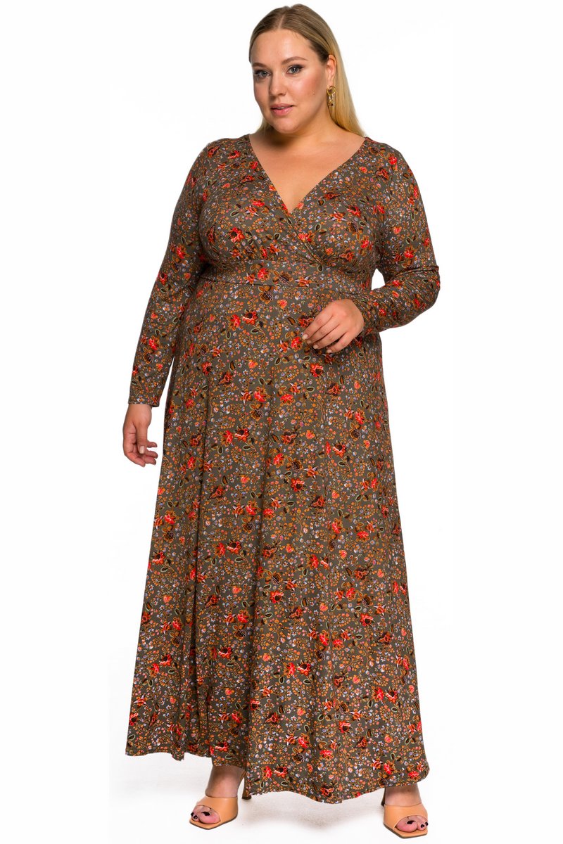 Платье длинное из вискозы с эластаном, лиф с запАхом, принт "цветы и пряности" *