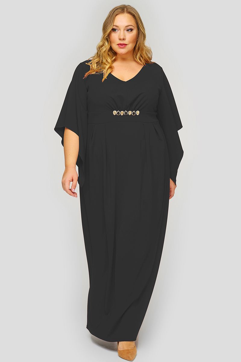 Платье длинное с разрезом из черного крепа с пришивным украшением