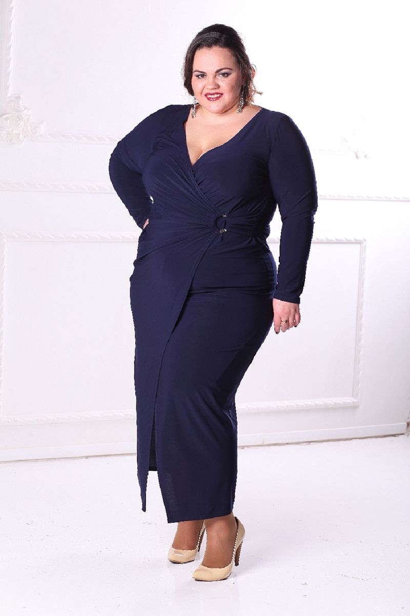 Платье вечернее из темно-синего крепа с пришивным украшением