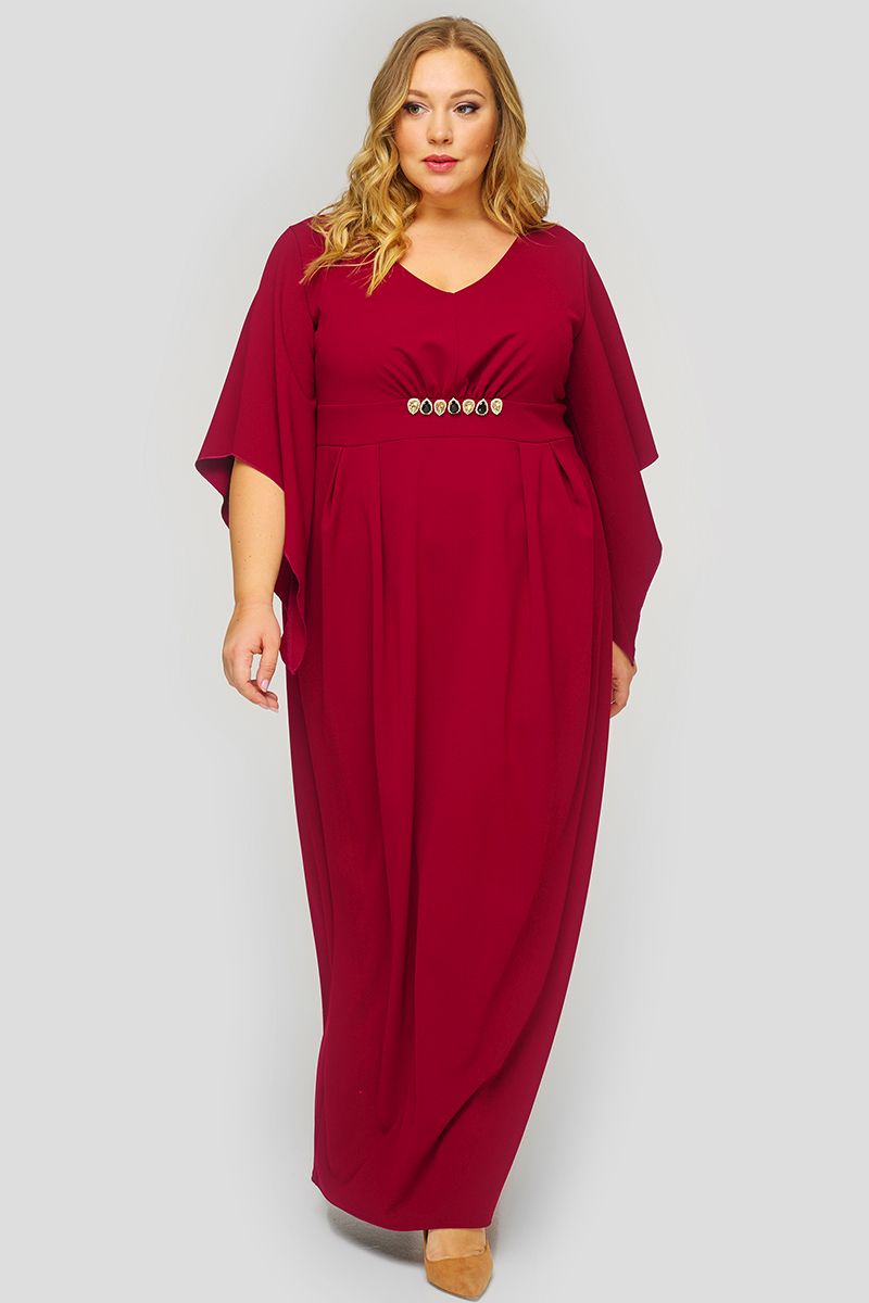 Платье из крепа с цельнокроеным рукавом цвета сомон