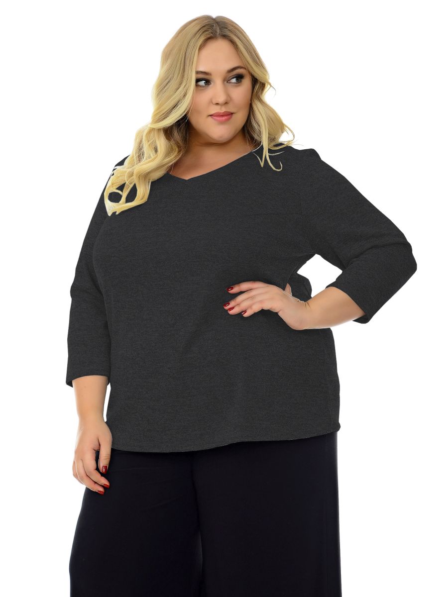 Блуза базовая, джерси меланж темно-серый