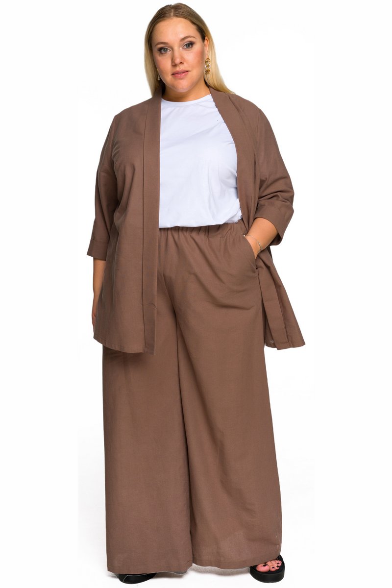 Брюки широкие из льна с карманами, цвет мокко