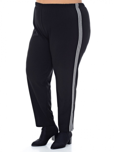 Брюки зауженные, 7/8, с лампасами, черные