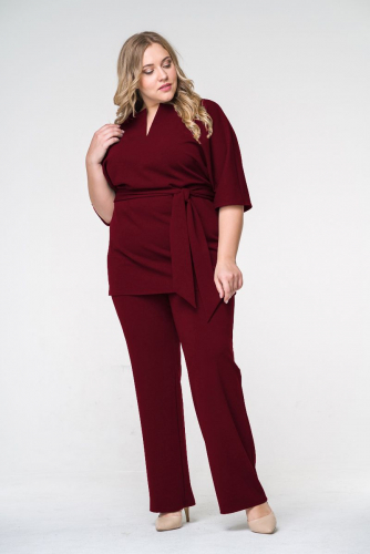 Брюки прямые из крепа бордового цвета