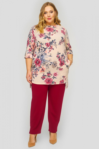 Брюки зауженные 7/8 из бордового крепа