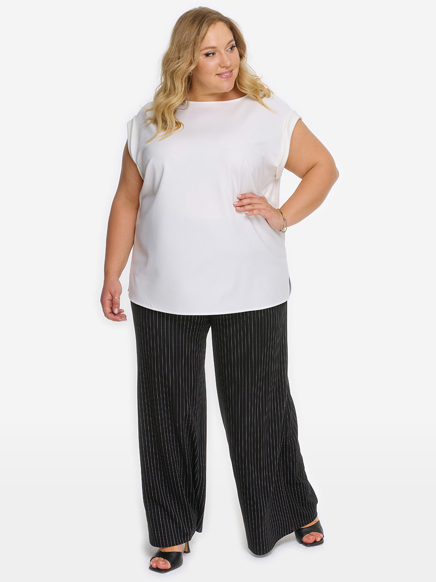 Брюки свободные из джерси, черный в полоску