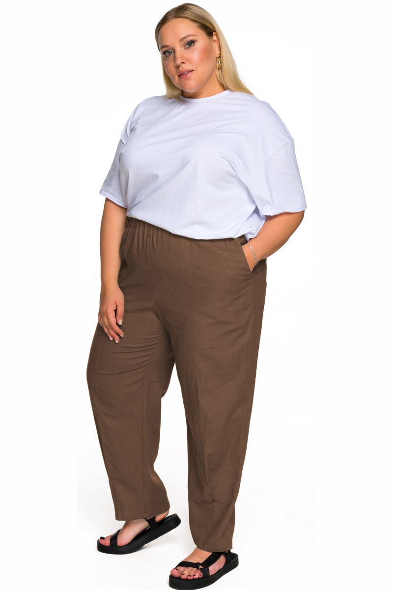 Брюки из льна с карманами, 7/8, цвет мокко