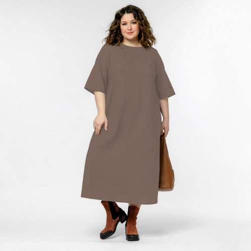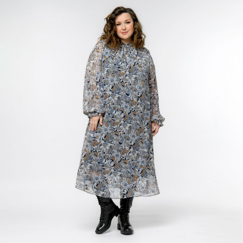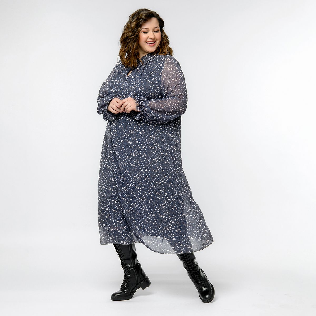 Платье из шифона с воротником "стоечка", принт "теплый серый"