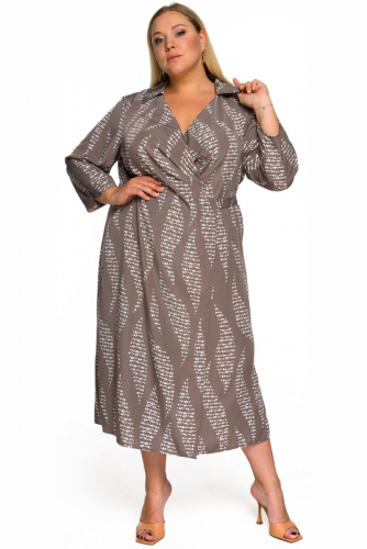 Платье с запАхом и отложным воротничком, цвет кофейный с белой абстракцией