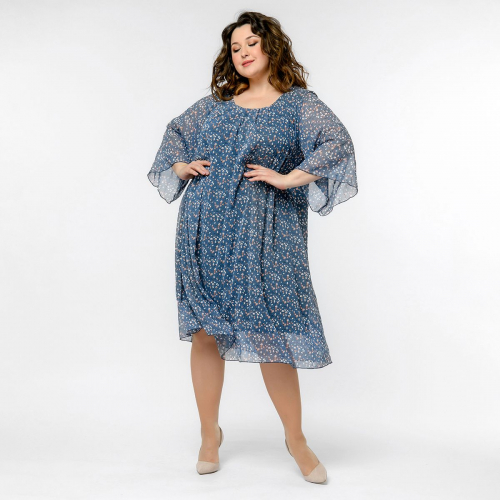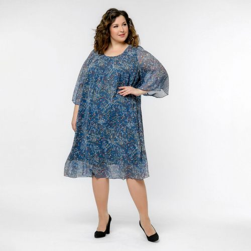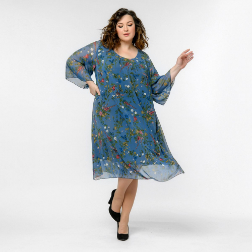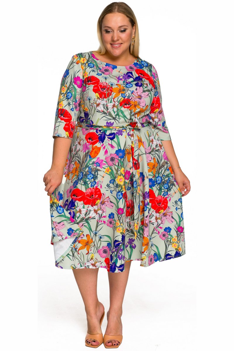 Платье с пышной юбкой, принт цветочный на ментоловом