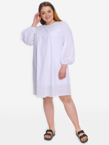 Платье из хлопка с рукавом реглан, шитье белого цвета