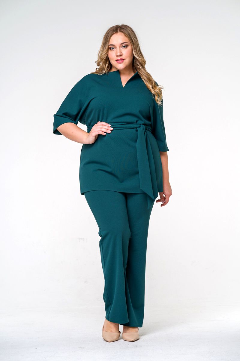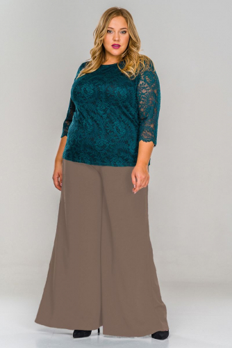 Брюки зауженные, 7/8, из крепа с эластаном, цвет хаки