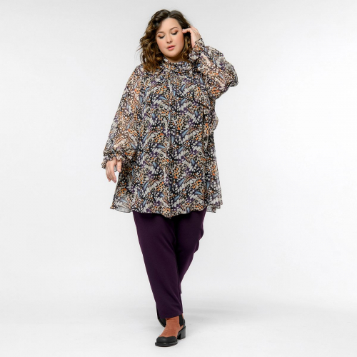 Блуза с бантом по горловине, шифон принт "крылья бабочки"