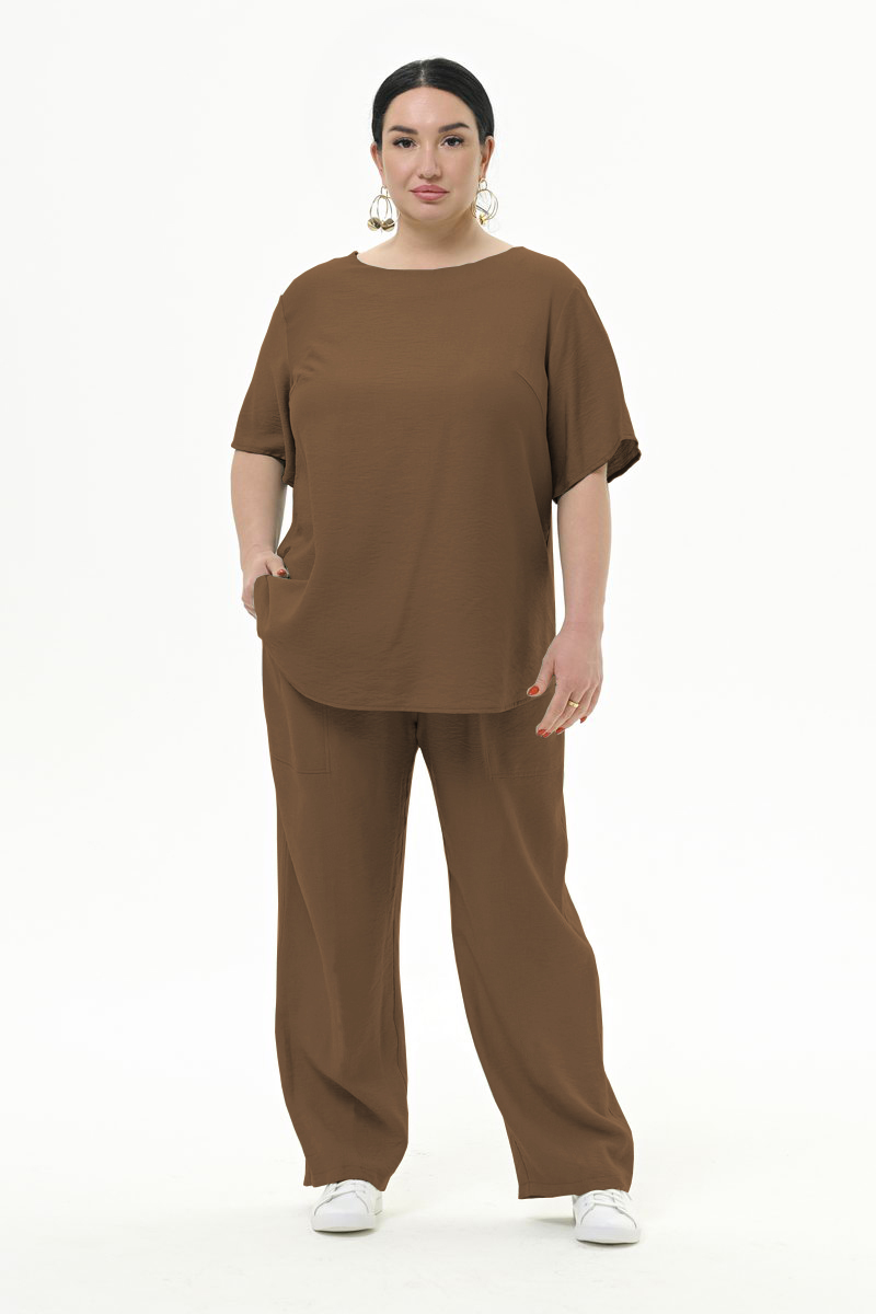 Брюки широкие из фактурной вискозы, цвет "корица"