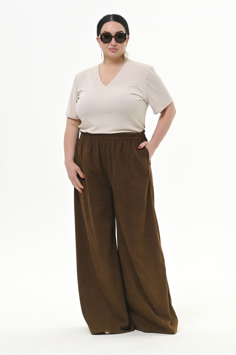 Брюки широкие из вельвета с карманами, цвет "молочный шоколад"