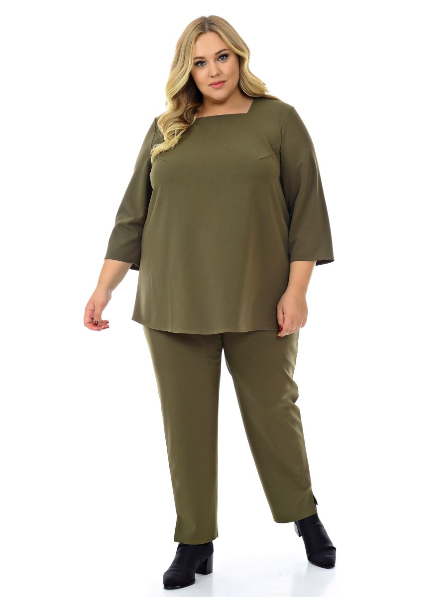Блуза свободная, с вырезом "карэ", цвет хаки